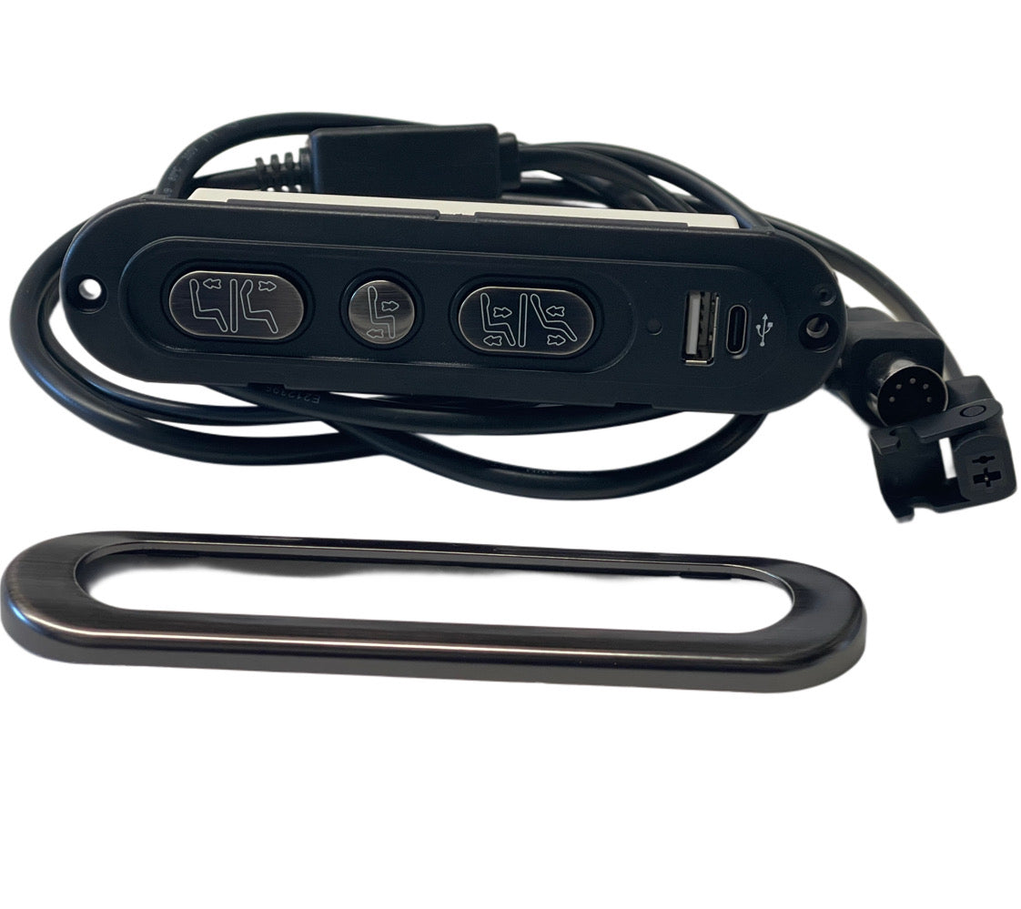 Genuine CNDOER DL-SK-199-2-003-DL-3378-LHF Switch. Comes with 5 buttons to operate the foot footrest and headrest motors also has USB and USBC connection ports. Also has an elegant silver finish face plate and round 5 pin plug and 2 pin connection cables.