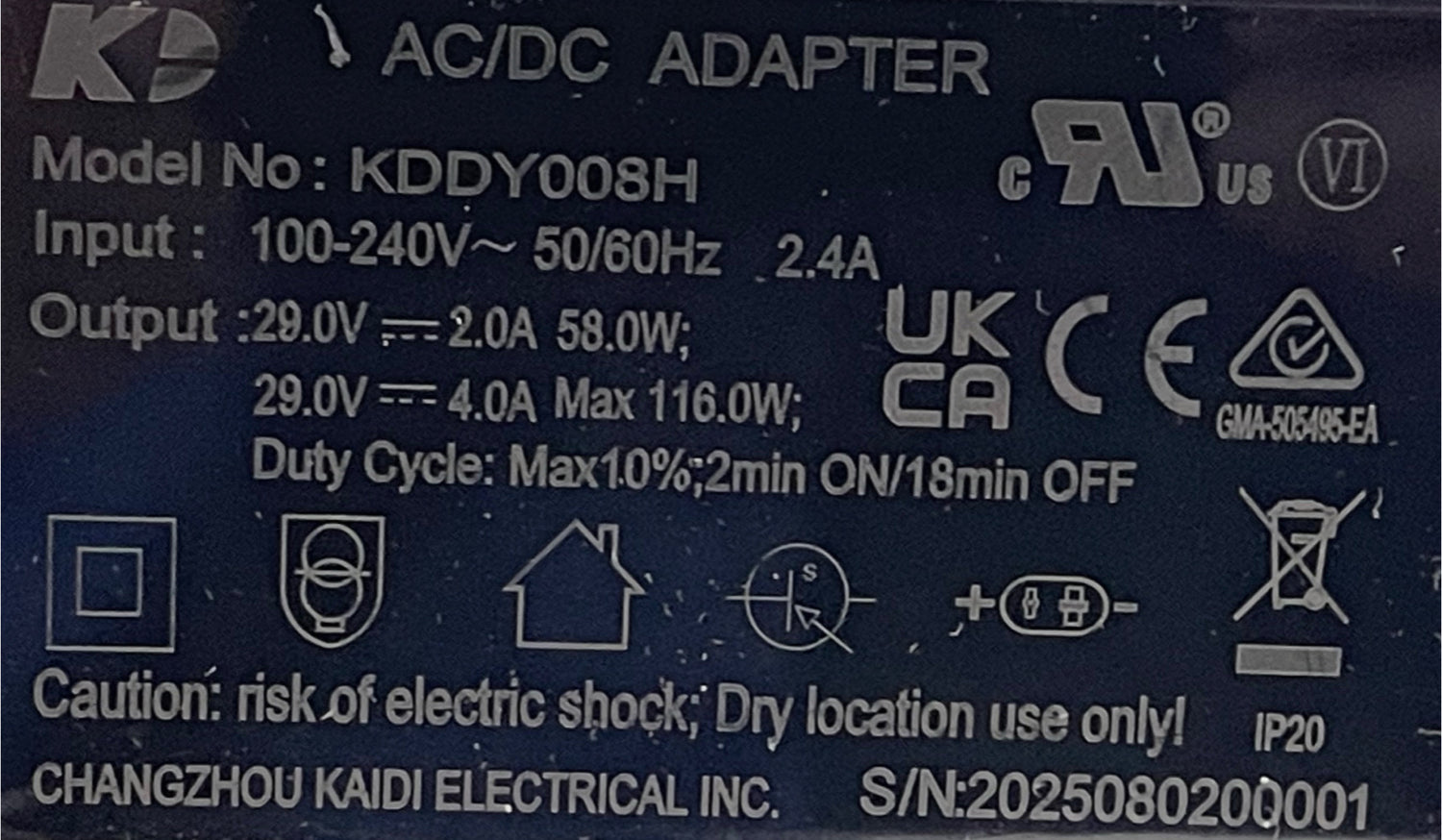 This Kaidi Recliner Power Supply - KDDY-008H replacement power supply for reclining chairs is generally found in Nick Scali & Plush range of couches. It has the "O l" (oh one) flat blade / round pin plug. It takes the figure 8 power cord as standard. Because figure 8 leads area universal fitment, this power supply can be used worldwide. These plug ends are the industry standard and fit 99.9% of the recliners on the market. Genuine Kaidi electric recliner power supply Kaidi KDDY-008H which has industry standards output of DC 29v – 2amp to a max of 4amp and is compatible with the Okin JLDP.10.080.201, Kaidi KDDY008A, KDDY008C, KDDY008B along with the Okin SP2 & SP2-A, ZB-H2900030-G, CNDOER ZB-H2900020_A & RMT branded power supplies. ALL our electrical items are “C” Tick Approved – Meets Australian Standards and come with 12 month warranty. Images Shown May Vary Slightly From Actual Part in stock and Supplied Buy Genuine Kaidi Parts From CouchGuard®