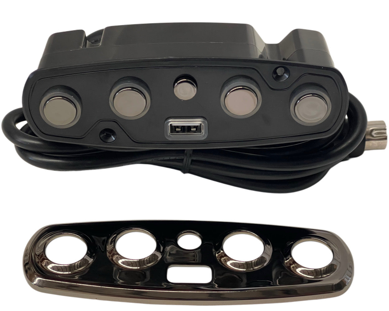 Okin recliner switch JLDK.17.05.36 with USB.This five button switch has home button and handy USB port. This electric recliner replacement switch comes with industry standard 5 pin straight plug.The switch also has a metal type look buttons and faceplate.