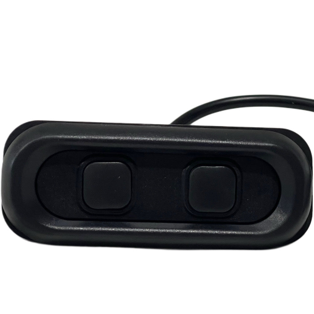 Okin recliner switch JLDK.24.01.02 with stylish black faceplate. Simple two button switch. This electric recliner replacement switch comes with industry standard 5 pin right angle plug .