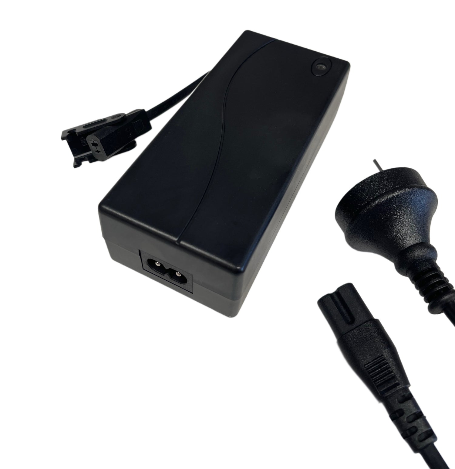 This Kaidi Recliner Power Supply - KDDY-008B replacement power supply for reclining chairs is generally found in Nick Scali & Plush range of couches. It has the "O l" (oh one) flat blade / round pin plug. It takes the figure 8 power cord as standard. Because figure 8 leads area universal fitment, this power supply can be used worldwide. These plug ends are the industry standard and fit 99.9% of the recliners on the market.
