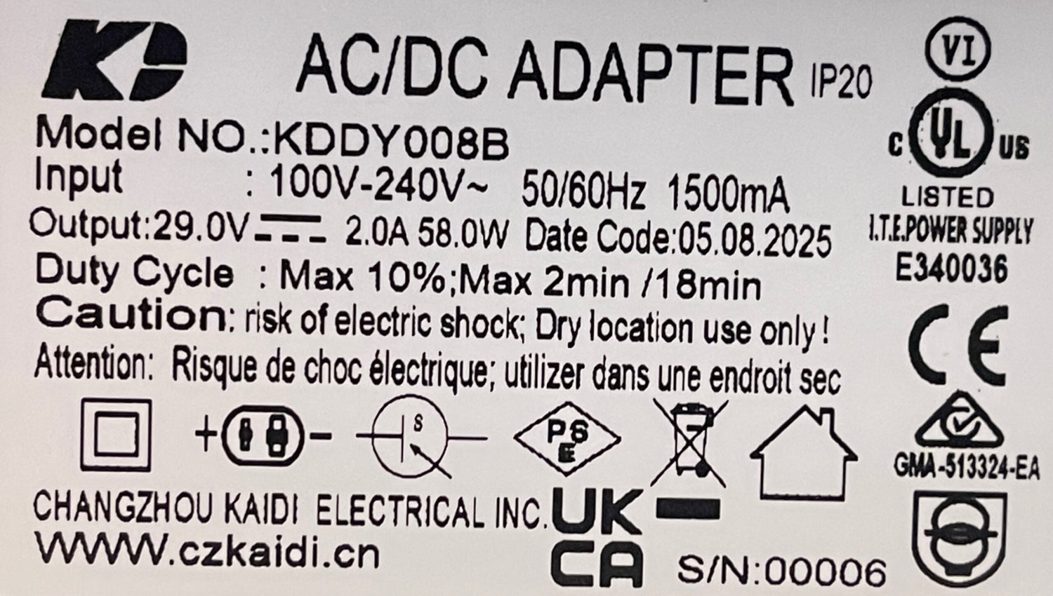 Kaidi Power Supply- KDDY008B - Power Supply Only is backordered and will ship as soon as it is back in stock.