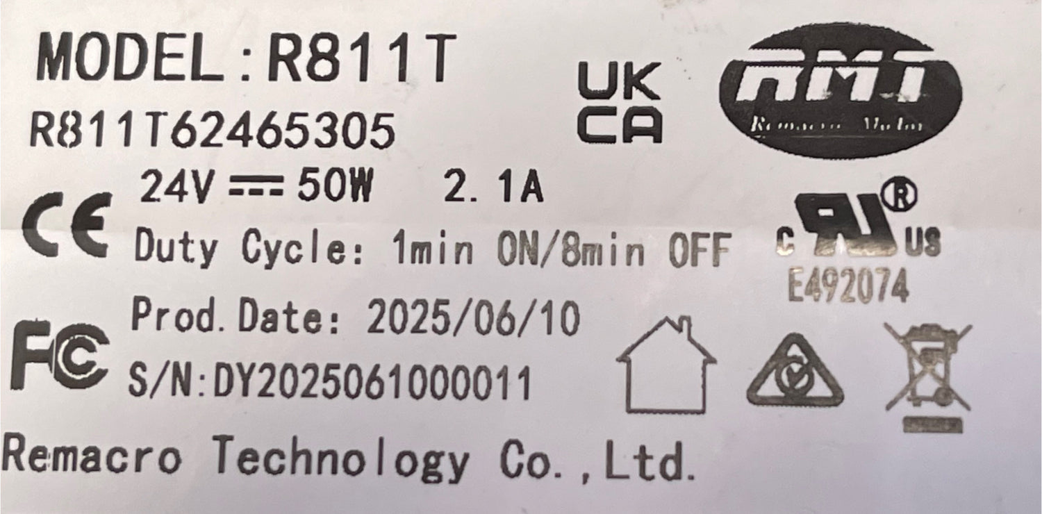 RMT Recliner Motor R811G replacement motor for recliner chairs and sofas. This Remarco Technology actuator, model No. R811G with Version No. R811T62465305 comes complete with a 5 pin plug and the Ol Male power plug, ready for installation.