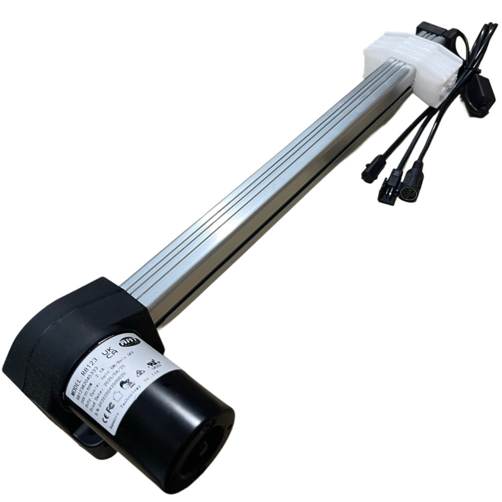 RMT Recliner Motor R8123 replacement motor for recliner chairs and sofas. This Remarco Technology Actuator, model No. R8123 with Version No. R812382045333 comes complete with a 5 pin plug, Ol power plug for the headrest and a Ol power plug, ready for installation.