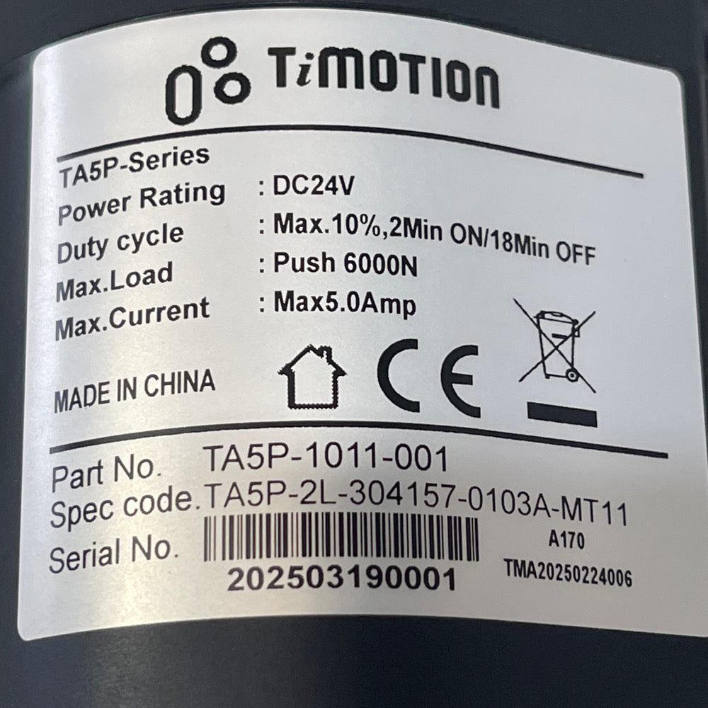 TiMotion TA5P-1011-001 Actuator is backordered and will ship as soon as it is back in stock.